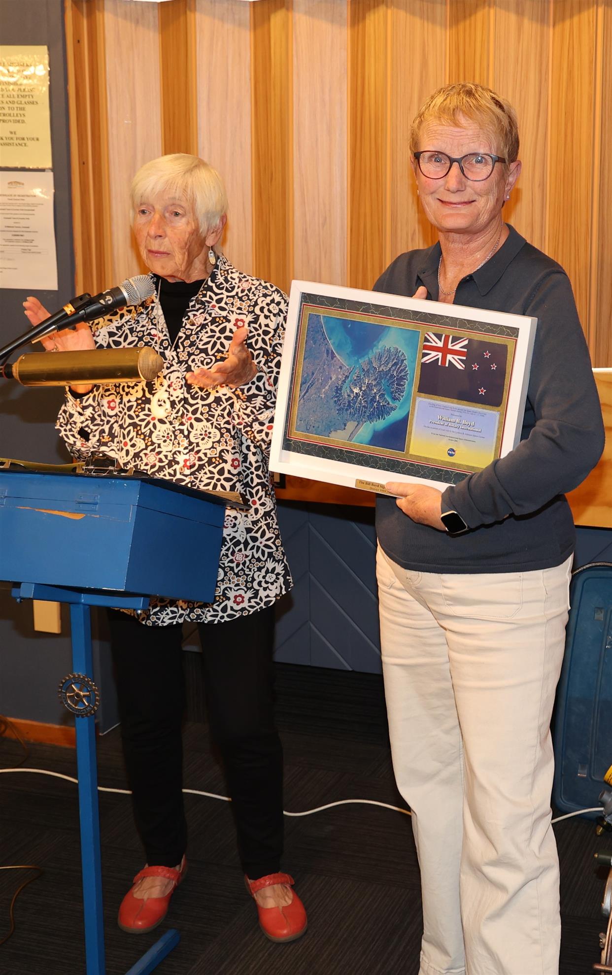 Guest speaker at the celebratory meeting last week was Jenny Scott. Jenny joined Rotary in Gore in 1994, the first woman to be invited to do so. She transferred to the Cromwell club in 1995 where not only was she warmly welcomed but became the club's second woman president in 1998. During her address she talked about the challenges of still frequently being alone in a sea of men at Rotary gatherings back then. She also read a lovely message from the club’s first woman president, Gill Adams, (1992) now living in Australia, who echoed Jenny's sentiments about how hard it was to break into the previously male only domain. Again Cromwell scored a first as Gill was not only the first woman to be President in the Cromwell Club, she was also the first woman President in New Zealand.